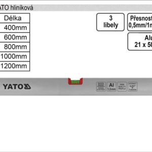 Vodováha se třemi libelami, celková délka 1000 mm, robustní profil, plastové koncovky, odolnost proti nárazu.