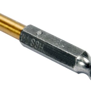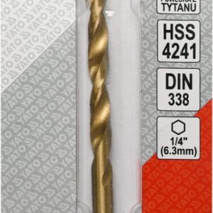 Vyrobeno z rychlořezné HSS oceli s Titanovým povlakem a vrcholovým úhlem 135°. Vrták je opatřen HEX 1/4″ uchycením.