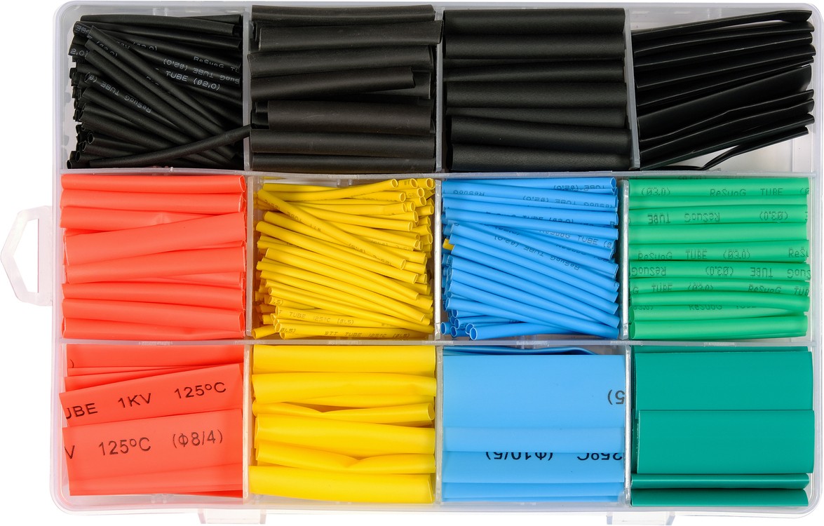 Sada 530ks smršťovacích bužírek s odolností do 125°C.