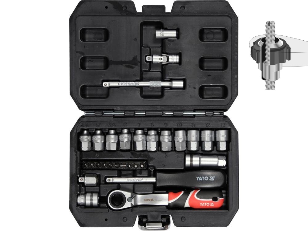 YATO Gola sada 1/4″ průchozí ráčna a ořechy 4,5-13mm 12hranné, 29ks