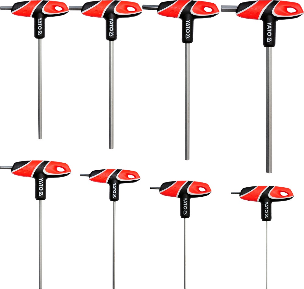 YATO YT-05583 Sada klíčů v provedení T šroubovák, osazený 2x imbus klíčem (1x dlouhý, 1x krátký) a ergonomickou rukojetí.