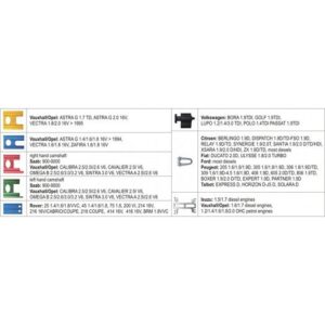 Pro auta značek: Opel, Saab, Rover, VW, Seat, Škoda, Ford, Fiat, Citroen, Peugeot.