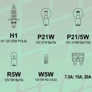 Sada je složena z nejběžnějších nožových pojistek a 12V žárovek.