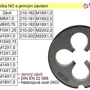 Závitové očko – kruhová čelist s jemným závitem, vyrobené z nástrojové oceli (NO) od Českého výrobce Bučovice Tools .