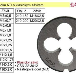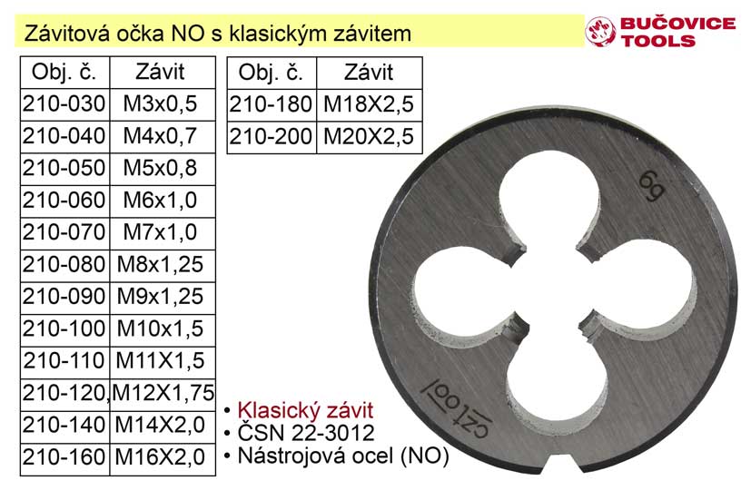 Závitové očko – kruhová čelist s klasickým závitem, vyrobené z nástrojové oceli (NO) od Českého výrobce Bučovice Tools .