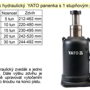 Zvedák hydraulický YATO panenka s 1 stupňovým pístem, 30 tun zdvih